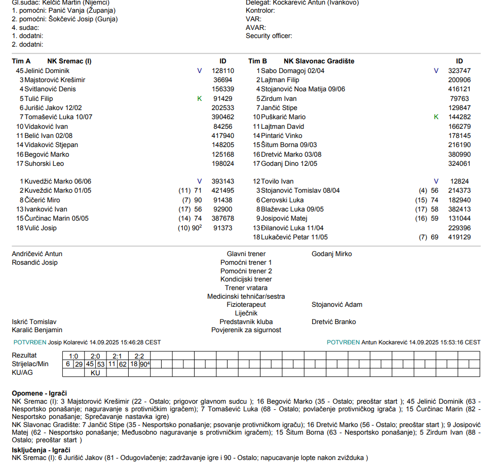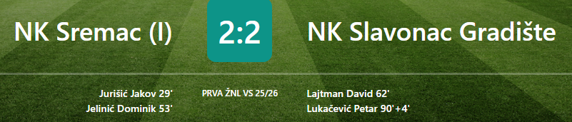 14.9.2025. Gostovanje u Ilači. U 12. minuti Dino iz slobodnog udarca puca malo preko gola. U 15. David ima odličnu šansu gdje puca sa 10-ak metara, ali mu vratar brani. U 20. David ponovno u odličnoj šansi, ali puca pokraj gola. I tada prva šansa domaćina i gol. Podvaljena lopta na centru i domaći igrač izlazi sam pred Sabu i zabija. Mi već tada počinjemo igrati neku čudnu utakmicu bez glave i repa. U 53. kazneni udarac za domaćina i 2:0. Trener Godanj iz igre vadi pola ekipe – Nou, Marka, Dinu, Bornu i Stipu, a uvodi Tomu, Josipovića, Luleta, Ceru i Lukačevića. Prvo u 62. David zabija za 1:2, a u samoj završnici Lukačević zabija za 2:2 i otima bodove domaćinu. Mi neprepoznatljivi, spori i bezidejni.